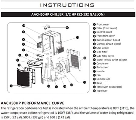 The Active Aqua AACH50HP Chiller Cooling unit is made from high-quality materials, including ABS plastic cover and a copper compressor. This ensures that the device remains durable and long-lasting, providing you with years of efficient cooling and dependable service.