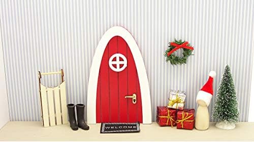 The Christmas Elf Door is a small, compact piece with dimensions of 5 inches tall, 3.9 inches wide, and 0.6 inches deep. The door is perfect for small spaces and can fit easily into any corner of your house. The size and shape of the miniature door are perfect for creating a whimsical, fantastical atmosphere during the holiday season.