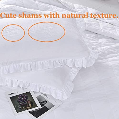 The set’s unique ruffle design is elegant, making it ideal for those who desire a romantic and cozy feel in their bedroom. The bedding set’s shabby chic style gives off a retro and vintage vibe, while still maintaining a timeless appeal.